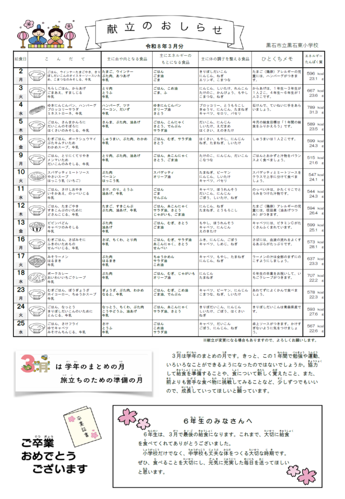 黒石東小学校ブログ 更新履歴